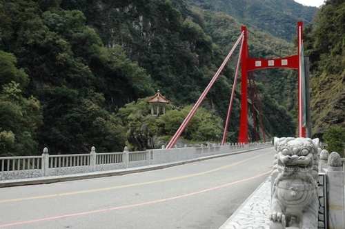 站在橋西端兩層的觀景平台上,可欣賞太魯閣峽谷,向東望去,左右兩岸山壁矗立,遠處是聳立的高山,溪流一路奔騰而下;與燕子口、九曲洞所看到的峽谷景觀,視覺感受迥然不同,竟神似太魯閣國家公園的標誌高山深谷的意象。
