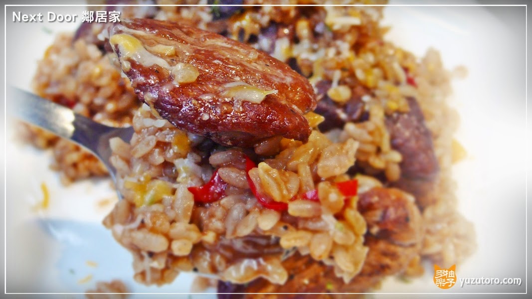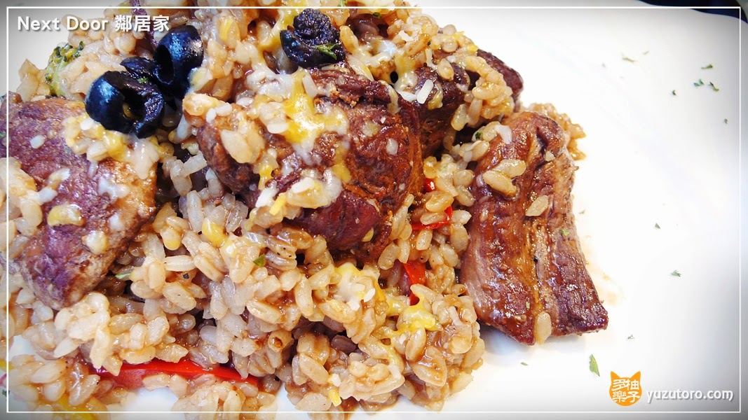 鴨肉不是好處理的肉,但鄰居家這道櫻桃鴨辣奶油佐巴薩米可醋燉飯料理的不錯;煎過的鴨胸肉口感紮實有彈性,搭配醋的酸香味兒,一口鴨肉、一口燉飯,整體吃來就是帶勁,一掃悶溼的暑氣。