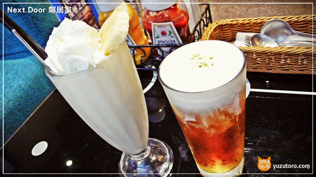 | 芭娜娜奶昔 140元(左),蘋果伯爵奶酪 160元(右) |
