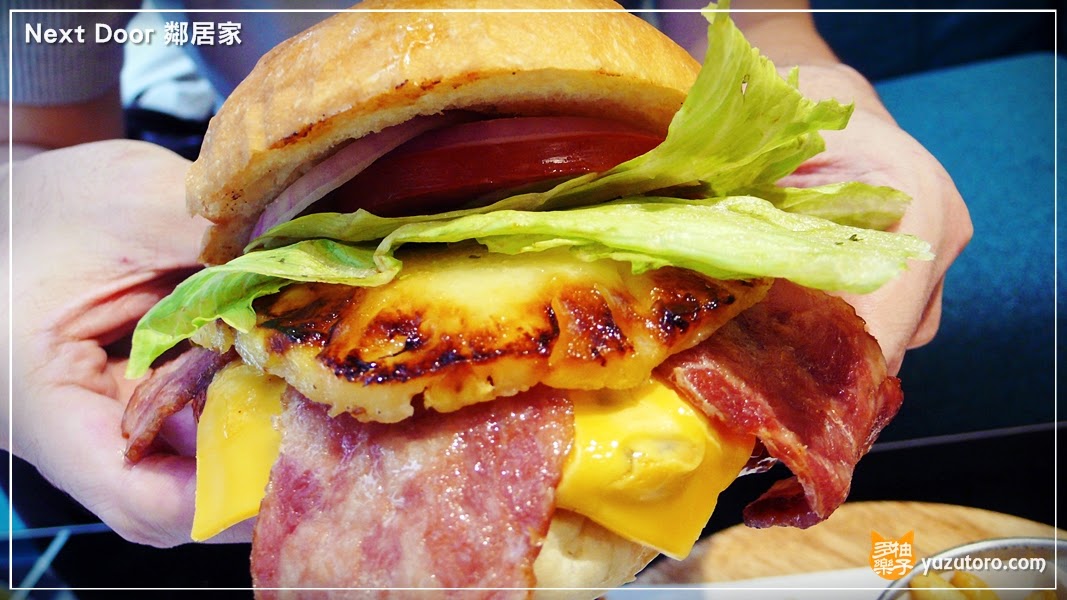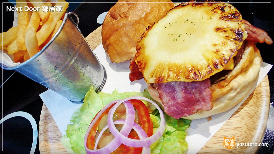 看到加州燒烤BBQ漢堡上桌,上面鋪有一大片的金黃色鳳梨切片,就知道這跟櫻桃鴨辣奶油佐巴薩米可醋燉飯一樣,是適合夏天的料理。