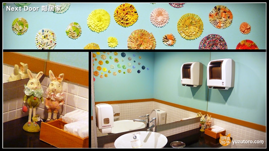 洗手間也是值得一提的地方,兩間洗手間中間的外牆是照片牆,很像老外的家庭佈置,從小到大的成長經歷,很溫馨,看了也會讓人會心一笑。