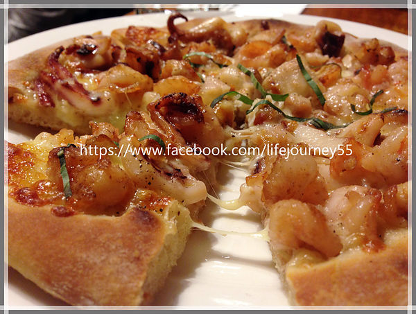 接下來上的這一份海鮮pizza真得讓我們驚為天人