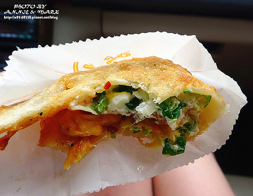 對折後的蔥油餅有一部分還露在紙袋外面啦!的確不小塊啊!