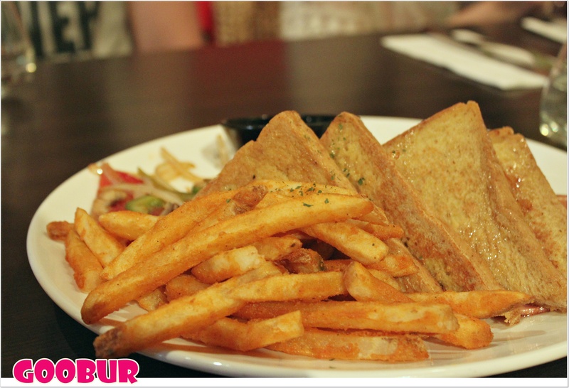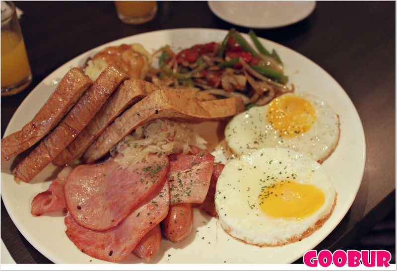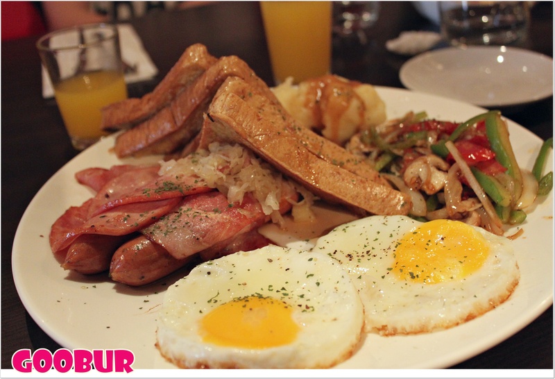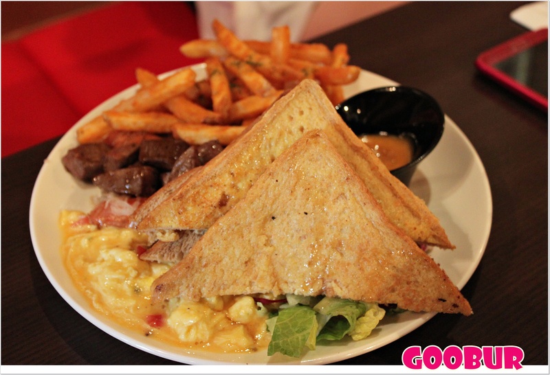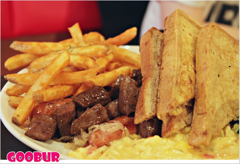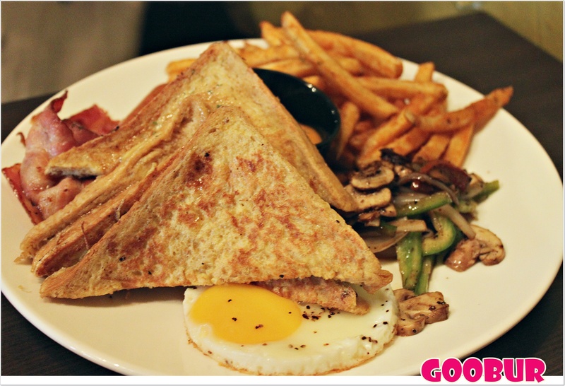 又是超豐盛的早午餐是不是吐司培根起士炒蛋這才能振奮人心迎接美好的一天又是一間歡樂的美式餐廰囉不過當天同鞋見面太宋快我又沒拍室內環境不要怪我XDD餐前蘋果先上來很特別別間美式餐廳可沒有水果呢牛排早午餐是不是真的很營養的SET加上薯條炒蛋吐司是楓糖口味真的好過癮哦磨菇青椒早午餐附的是太陽蛋蛋的型式可以選擇也是有培根好健康的一道雙蛋火腿熱狗早午餐這道也是有炒青蔬有肉有菜真的好貼心耶古堡的薯條也很好吃酥脆型香氣也很夠歐姆蛋包早午餐份量也是很足夠絕對吃的飽不想吃早午餐這裡也有義大利麵可以吃焦糖奶昔好好喝哦我最愛奶昔了好開心的同學會啊!!!!小貝克多帥啊不過他哭哭了店名:古堡GOOBUR電話:02-2711-1552地址:台北市光復南路308巷49號