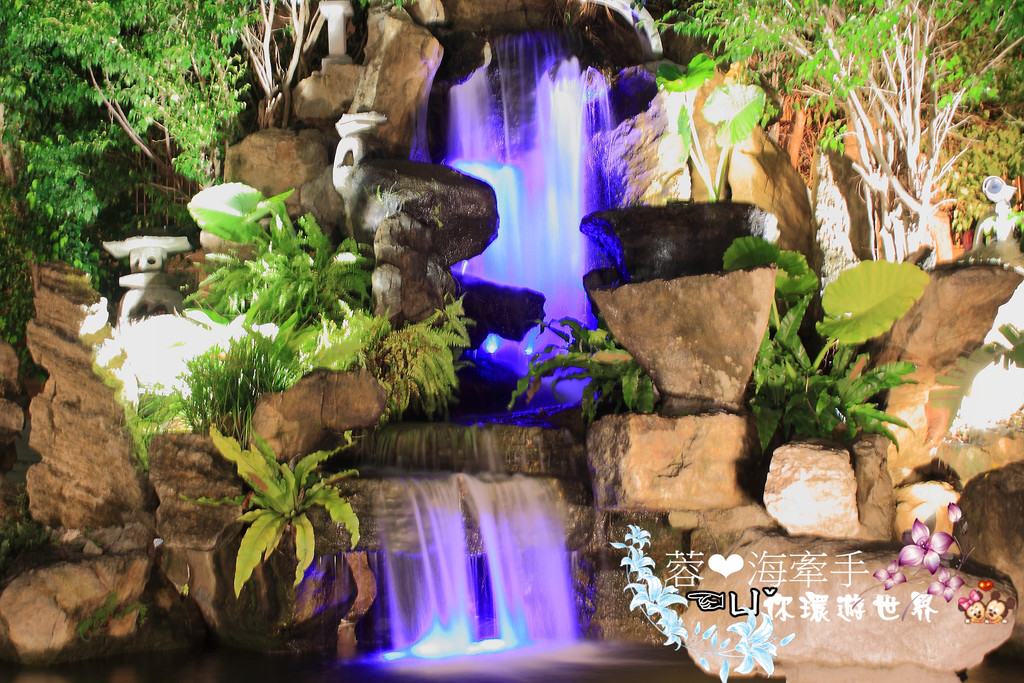 館外庭院還有不錯的造景瀑布,很適合拍照 ▼