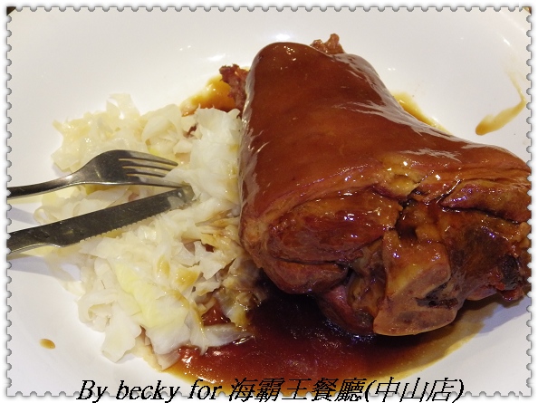 店家選用好的豬蹄加上海霸王獨家配方的滷汁,所以圓蹄吸滿了滷汁,看起油亮油亮,送上來後,服務人員馬上幫忙“劃分”,讓我們方便食用。