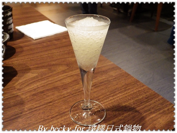 正在吃中,送上了一杯日本小鼓梅酒冰沙:帶著淡淡的梅酒香氣,說是冰沙~倒是覺得是冰塊,因為不夠細膩。