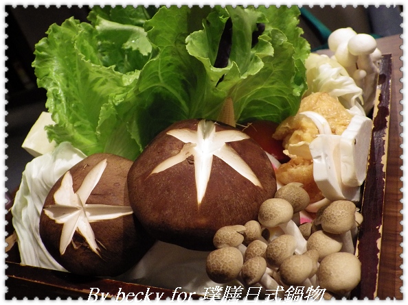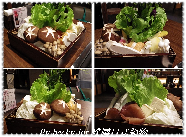 接著送上來的是精選食蔬菜盤:用高麗菜為底,有青江、大陸妹、菠菜龍鬚菜等等蔬菜;搭配著南瓜、甜玉米筍、金珍菇、杏胞菇、精鴻喜菇、雪白菇、鱈魚子福袋、蕃茄等各式新鮮食蔬;顏色很繽紛。