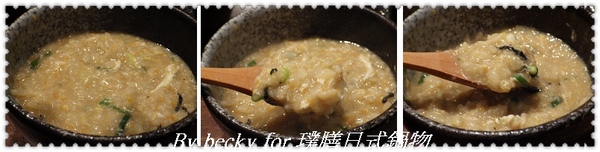 最後店員拿了一碗飯來~倒入鍋中剩餘的湯頭內,原來要做成黃金一品雜炊~