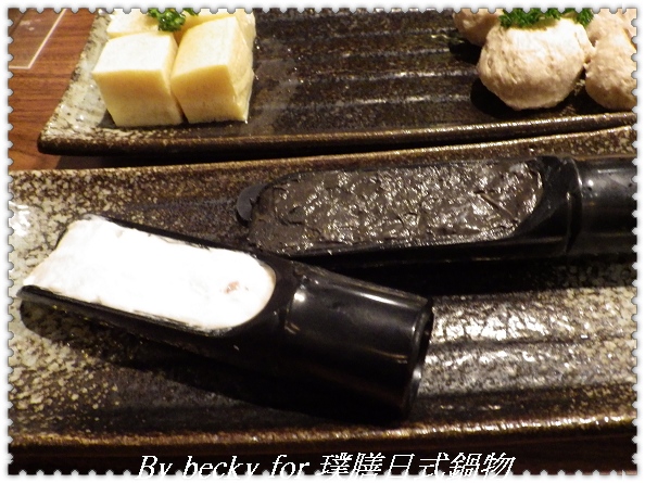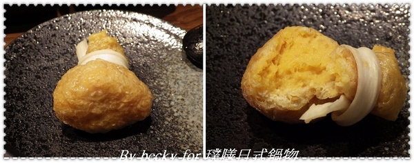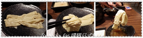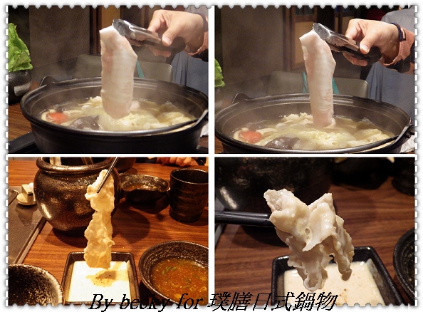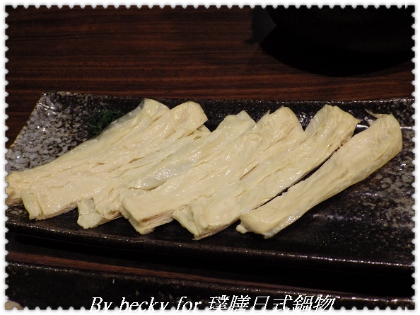 這是滾豆漿時最上面一層薄薄的豆腐皮,柔軟度無話可說,淡淡的豆味充斥嘴中,服務人員交待下鍋後2~3秒即可撈起食用,沾著和風金桔醬,很順口的一塊接一塊。