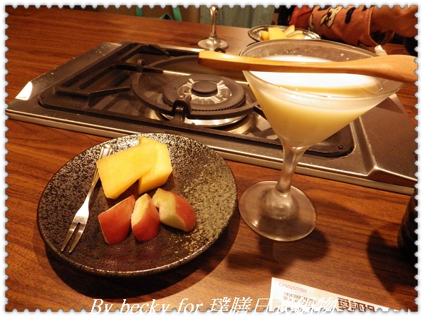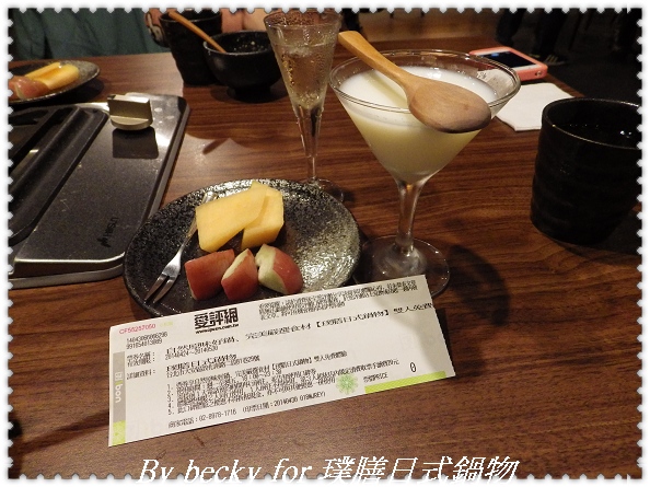 最後送上來的是甜點及水果~水果部份吃了蓮霧後再吃哈密瓜,感覺就沒有那麼有水份,不過味道很香;甜點是杏仁凍,吃在口中有淡淡杏仁香,不過牛奶味偏重也有點甜,入喉後比較像是牛奶糕,因為吃起來有黏稠感。