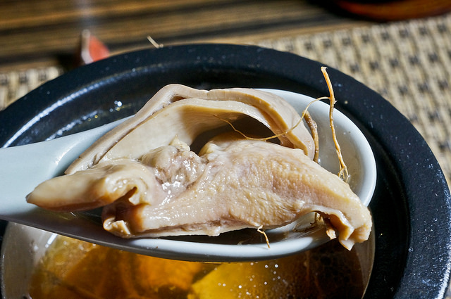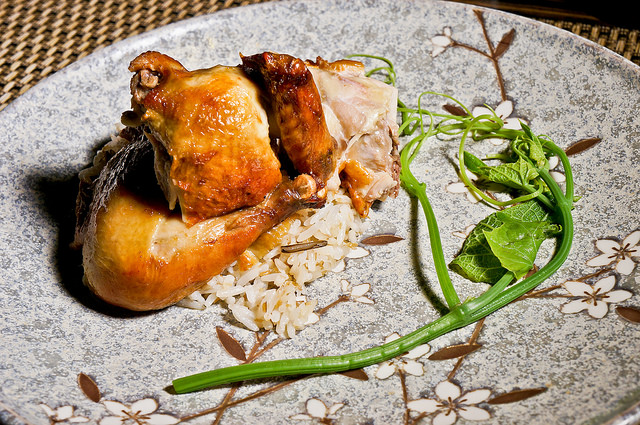 野味在這邊用的是春雞,以燒烤方式製作,據傳為張學良將軍於新竹幽居時,原住民提供給他的菜色
