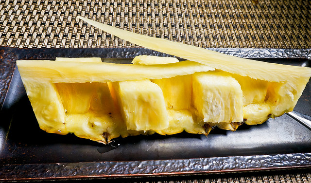 水果的話是時令的鳳梨,切工了得,很甜的鳳梨