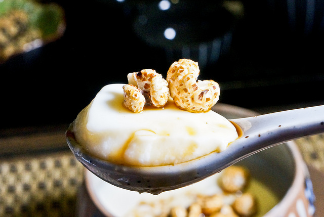 純手工製的豆花上面佐了炸薏仁
