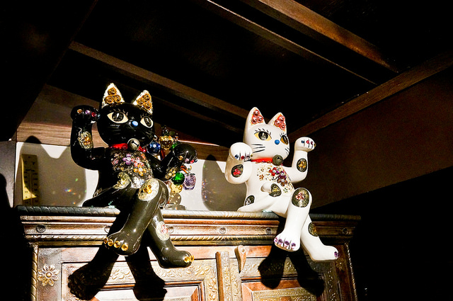 中式的吧台但擺著許多漂亮的招財貓