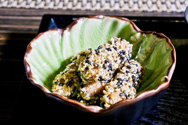 涼茄搭配檸檬胡麻醬,不是提醒,可能會誤以為這是筍子或是其他蔬菜,茄子去皮之後,料理的好,去除了茄子本身那股特殊的味道 ( 有朋友因此不敢吃茄子 )