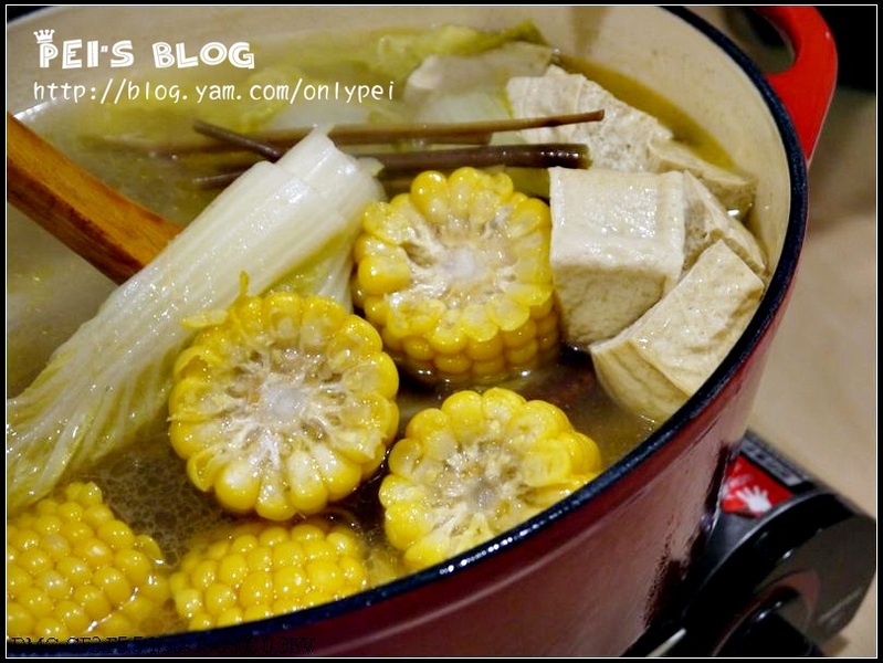 簡單的湯底(娃娃菜、甜玉米、凍豆腐),沒有多餘華麗的配料,