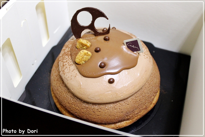 眼前看到的是一座巧克力山丘的圓身,名符其實為咖啡巧克力口味,這形狀應該就是所謂的圓帽吧。在巧克力乳酪蛋糕體上方,先鋪上一層巧克力醬,再淋上一層咖啡巧克力,二層醬面上感覺非常滑順,沒有顆粒感。