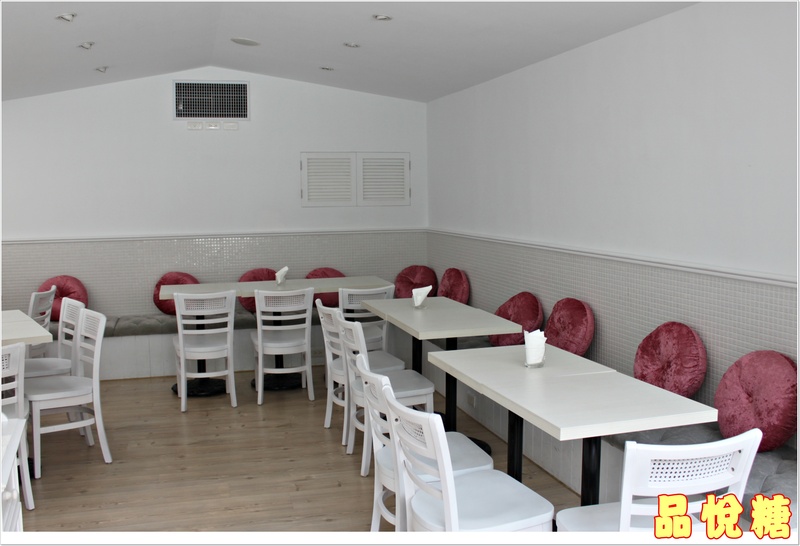 旁邊另一區是可愛的馬卡龍色系的碰椅 好繽紛 還沒吃甜點心情就好一半