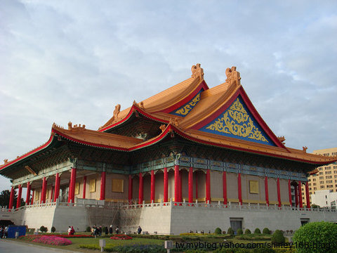 中正紀念堂堂高七十公尺,四周牆壁以白色大理石堆砌而成,