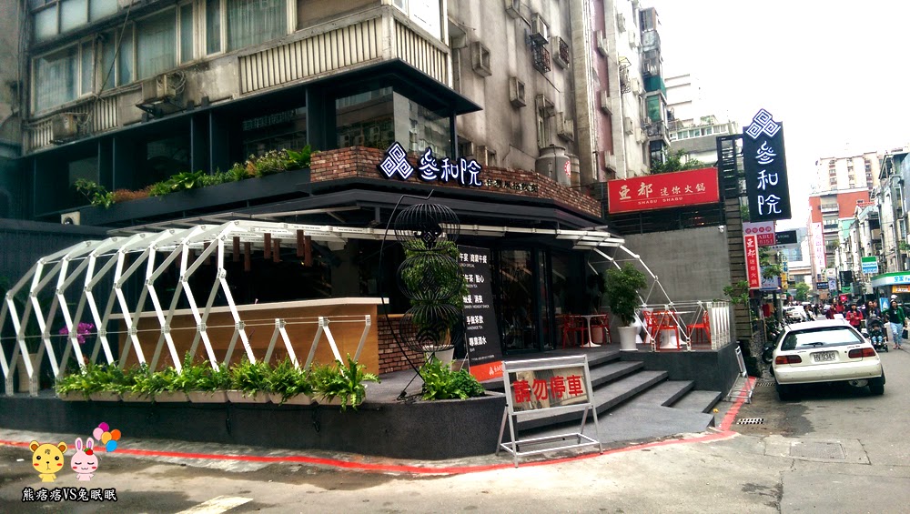 叁和院位於忠孝復興捷運站4號出口附近,是在東區的巷子內,外觀有種復古帶點時尚的風格,是說...我合理懷疑台北的天氣都很詭異,每次上去都下大雨,等要離開台北時就沒雨了...我必須先聲明我絕對不是雨神的象徵...所以一開始來時雨太大,沒辦法拍門口,就等離去時在補拍一張。