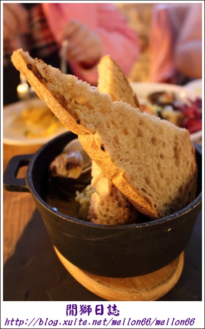 再將像蓋子的酸麵包撕成小塊沾濃湯吃~