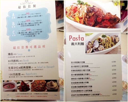 餐點有輕食也有正餐類,提供三種套餐組合,