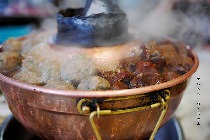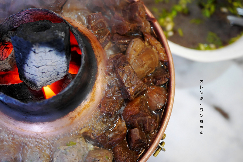 於是裡面擠到不行的牛肉丸子們與牛肉塊們就這樣在沸騰的湯頭中滋滋作響...