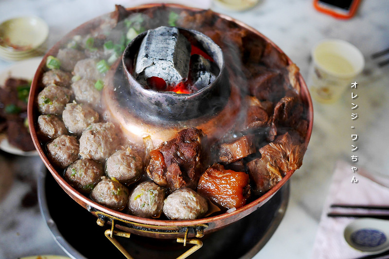 它是有點傳統的炭爐火鍋..用的是紅銅鍋..將燒紅的炭擺進鍋子中間藉由導熱加熱..