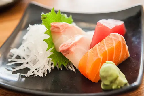 定食配菜有玉子燒、海帶、高麗菜絲、味噌湯
