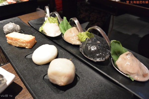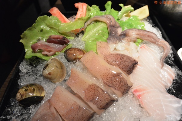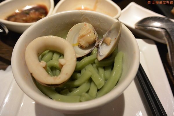上桌有點失望,沒有蝦蝦,內容看起來有點單薄,一隻魷魚、3個蛤蜊、幾片魴魚片、魚皮、兩條蟹肉條,魷魚很新鮮,煮完後吃起來很彈牙,魴魚口感比較軟,吃起來不太習慣。