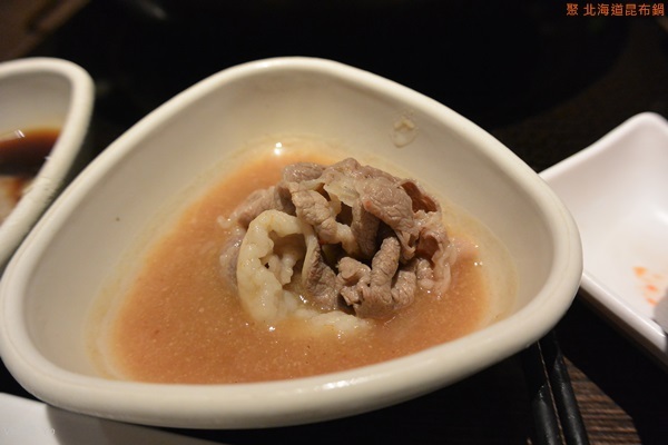 選用美國牛,油花分布不錯,肉麵厚度適中,煮約八分熟就可以吃了,口感很嫩,好吃到很想多加點一盤…