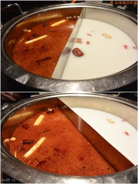 湯頭我們選擇的是昆布麻辣湯、昆布牛奶湯