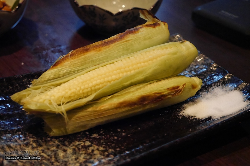 ↑連外皮一起烤的玉米筍,上桌的時候居然有玉米的香味。