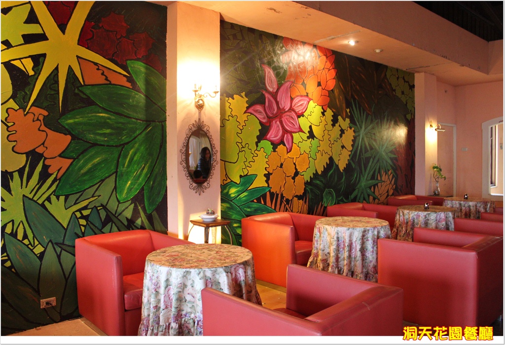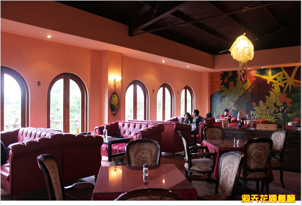 這樣的用餐環境真是讓人心曠神怡XD一進門口的鄉村風的客廳復古彷舊的味道濃厚用餐區的小小一部分這樣的感覺真的很舒服可以好好沉澱心靈的地方這面WALL的塔好可愛哦到處都是驚喜啊我最愛熊熊啊另一區用餐的地方比較明亮這是門口的大搖椅一定要跟他拍拍照唷復古電話筒好可愛耶只要這種東西一擺風格立現無誤好啦我們可以上菜了啦濃湯香濃好喝一點也不馬虎烤麵包熱熱的要快快吃酥脆啊蛤蜊義大利麵蛤蜊超大不用說麵條吸飽精華湯汁硬度適中十分好吃而且份量適中男生也吃的飽呢鮭魚寬麵啊我最喜歡的寬麵不過它很特是很像台式的寬麵一樣有咬勁湯汁很鮮很稠配上新鮮鮭魚深得我心而且這道份量更大啊吃一餐飽二餐了真是超值XDDD這裡佔地真的很廣大啊所以有空來陽明山記得來這走走或喝個下午茶也很有FU那個時候去寒流正來,好冷好冷,縮的跟熊一樣了,不過好吃的食物跟悠閒的環境讓人心情放寬許多,重點是這裡就算是假日也沒有到都是人的情況,反而能真的好好坐著休息,讓腦袋清空也很不錯,很推薦大家來這裡用餐拍拍照唷。店家:陽明山洞天花園餐廳電話:02-2880-5680地址:台北市士林區仰德大道二段2巷2號