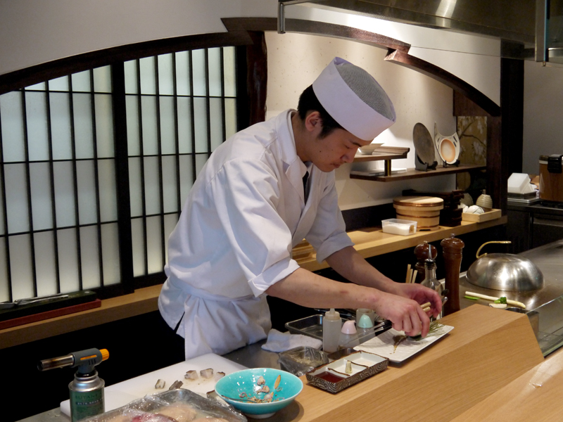 【師傅忙著料理與擺盤,非常專業迅速,像在欣賞一段演出】