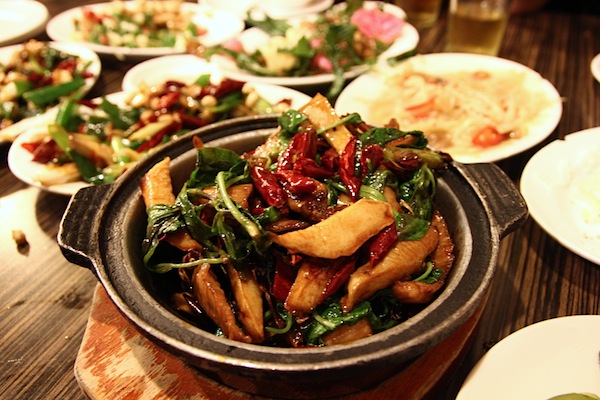 蔥段、花生與乾辣椒炒出來的宮保雞丁,勾芡的醬汁包裹著雞肉,雖然辣椒很多,但吃起來卻一點也不辣,味道偏甜,雞肉使用胸肉部位,口感較老,但口味較重,適合下飯。