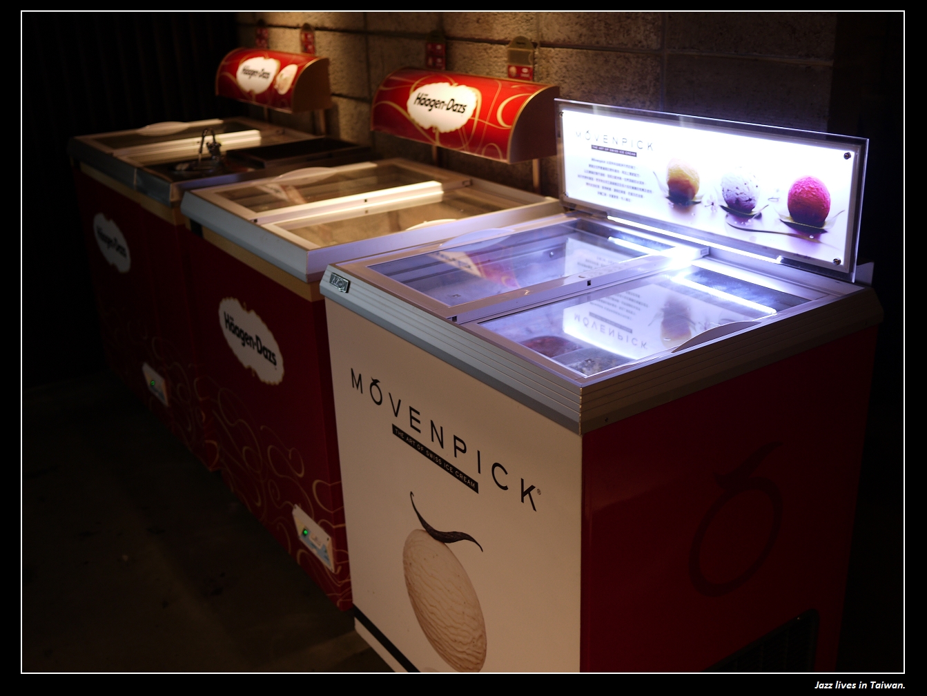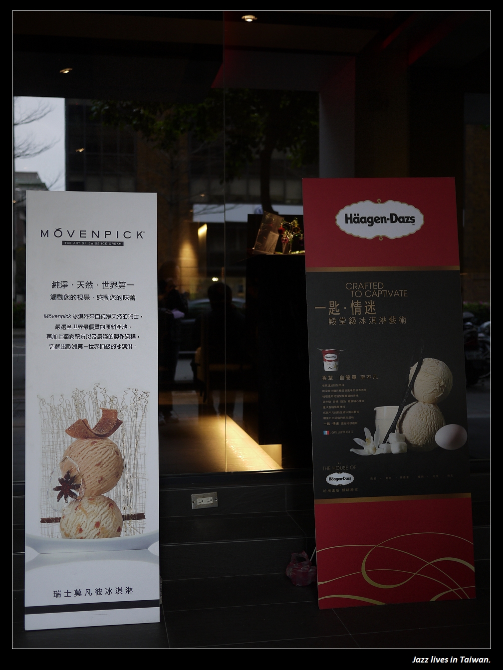 門口的立牌標示著, 提供莫凡彼與哈根達斯冰淇淋,