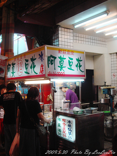↑今天沒有想採買的服飾、物品,但這家豆花是每次逛夜市一定必吃的點心之一。↑豆花只要$30,可選2樣配料。