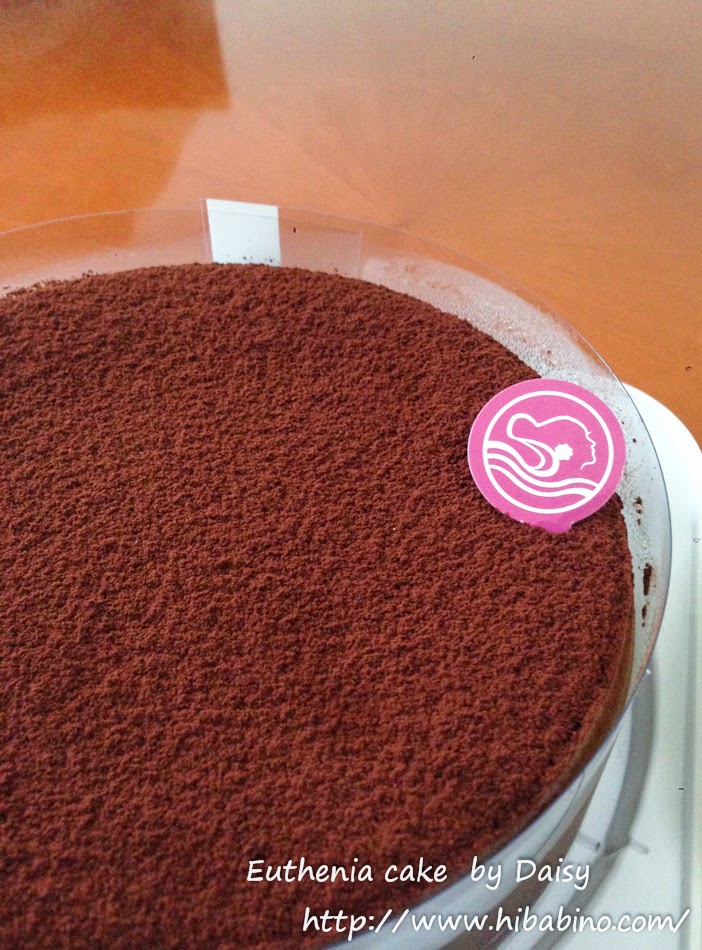 打開後可以看見Euthenia把蛋糕用透明的薄板給圍起來,因為這軟蛋糕可真的是非常軟,如果沒有多一層保護的話,這蛋糕可能在運送的途中就毀掉了我想...。
