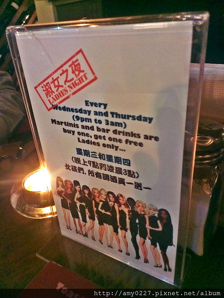 週三和週四還是Lady's night,女孩兒晚上九點到凌晨三點都享有調酒買一送一的優惠呢