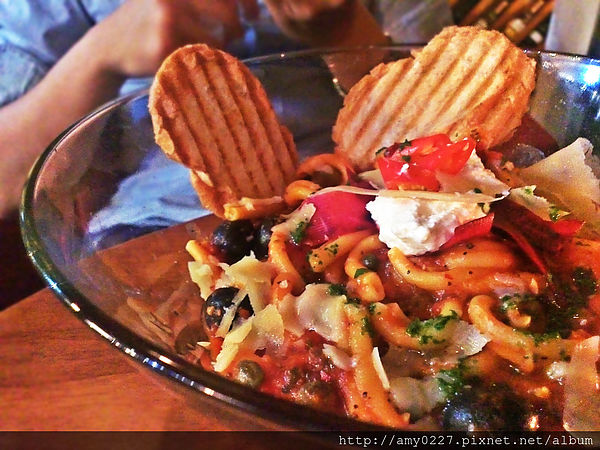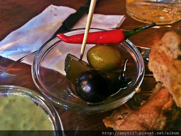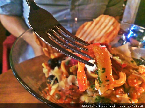 吃帕尼尼附上的醃漬小菜,雖然顏色看起來挺不賴的,但我完全沒碰XD