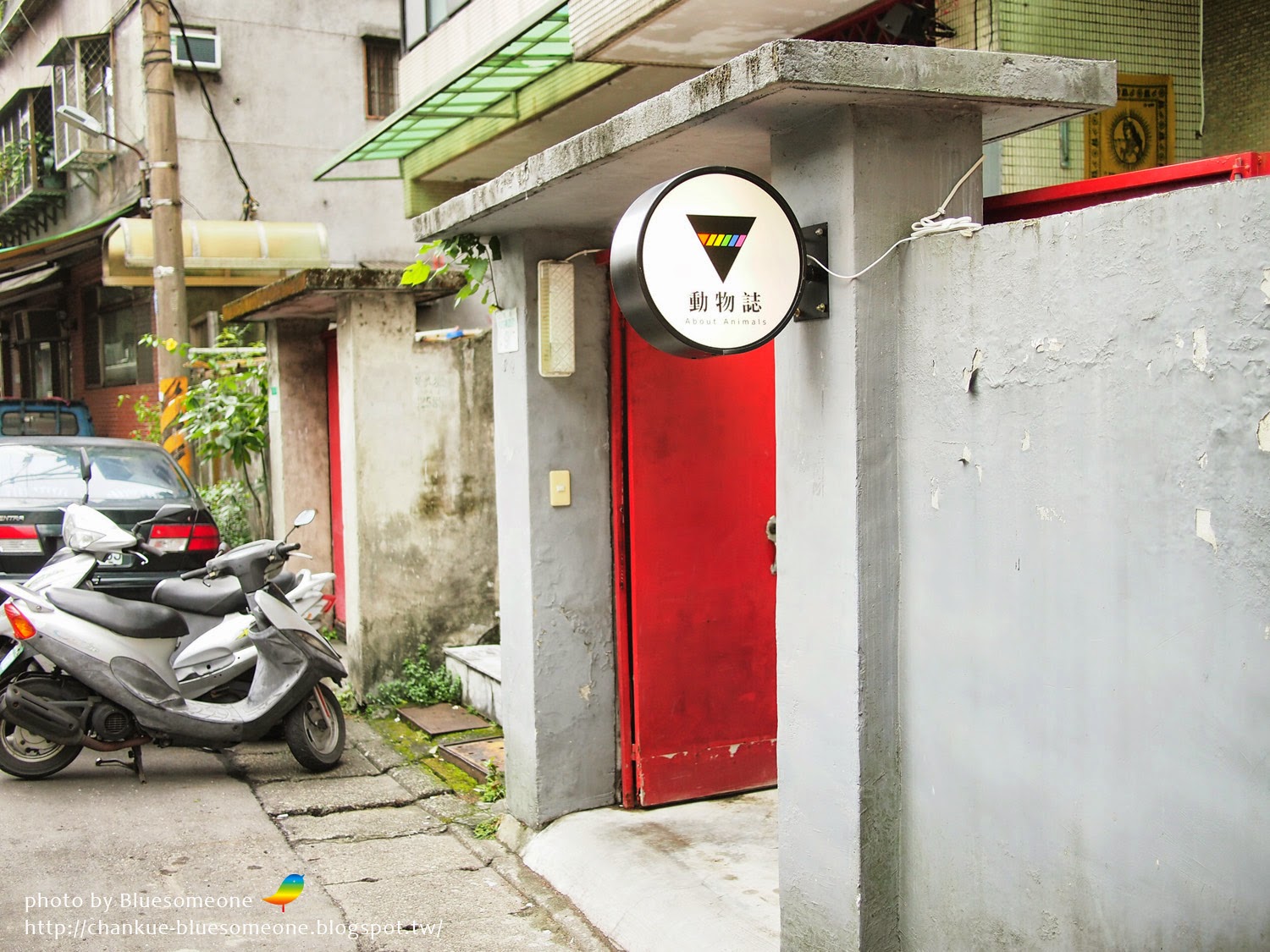 動物誌在捷運萬隆站2號出口旁的巷弄裡,一間看起來很普通、有著紅色大門和灰泥牆的小房子。