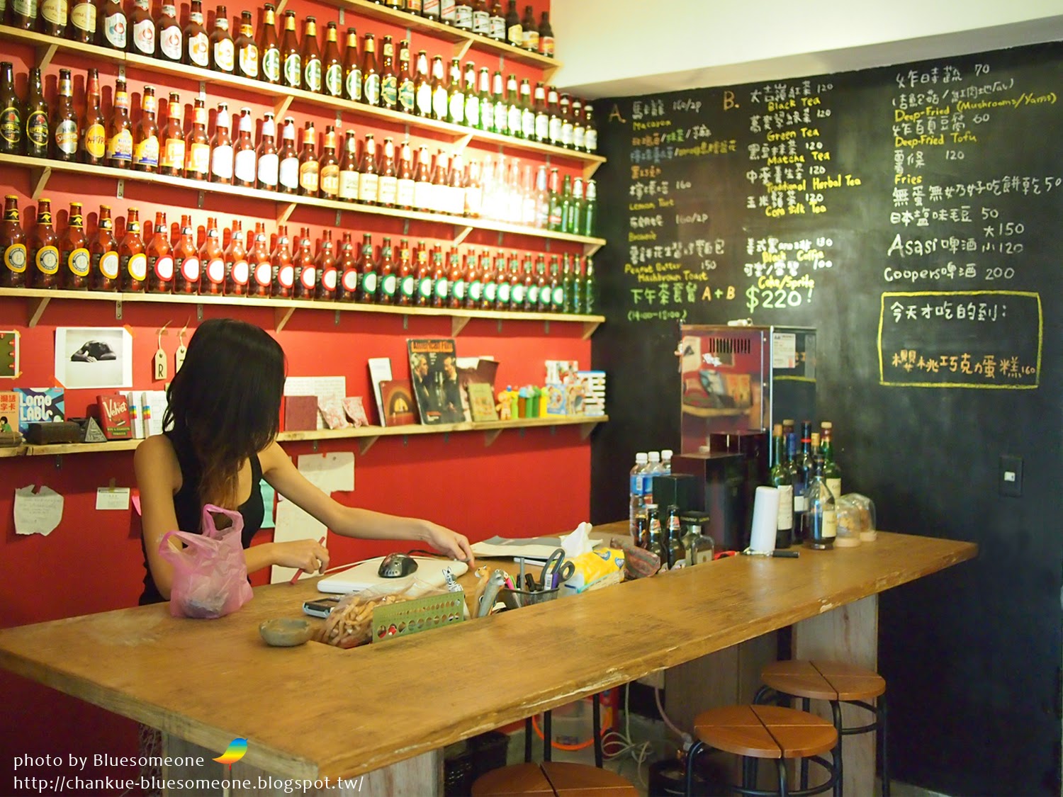 那些都是老闆娘在澳洲旅遊時喝的啤酒瓶,