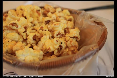 餐前菜 甜的爆米花 無限供應 特色之一 外層沾附的糖漿滿平均的 很涮取