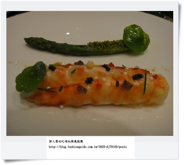 葡萄藻明蝦趁阿月渾子風味豬脂蘆筍