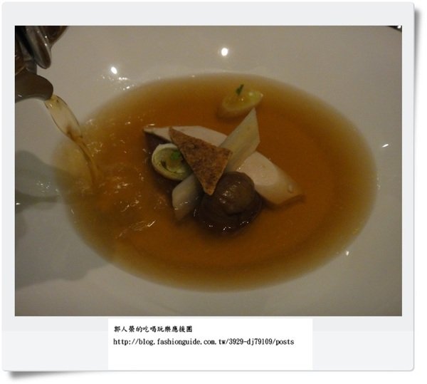 第二道菜很妙~ 名為鴨肝嫩雞烤鴨風味湯!