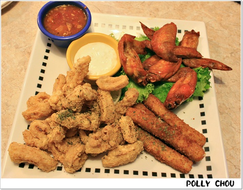炸物大拼盤 花枝、辣雞翅、起司條 A先生又偷偷點 他看我每樣都想吃