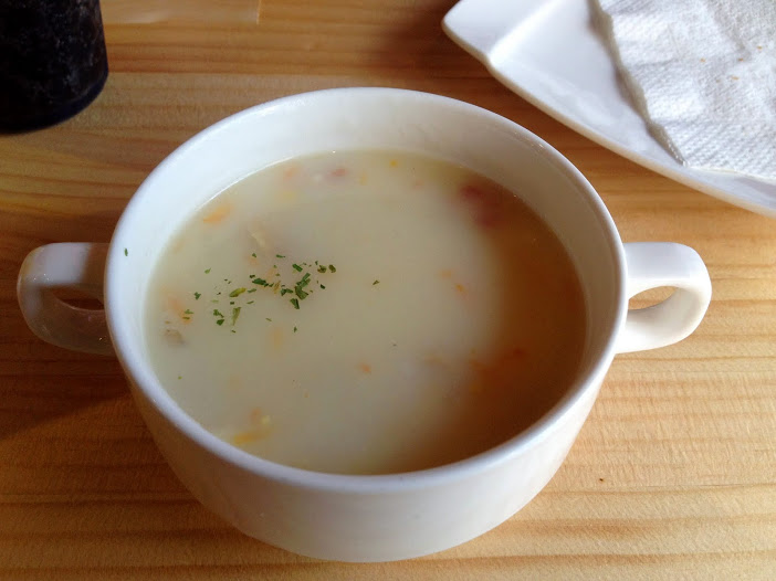 這不是玉米濃湯,已著淡淡的煙燻火腿香,洋蔥的甜味取代了玉米的甜味