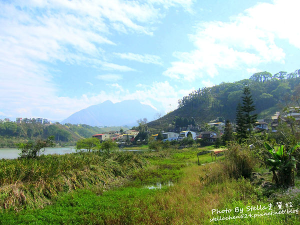 遠處青山與斜屋紅瓦相輝映,景致優美不亞於瑞士的湖光山色